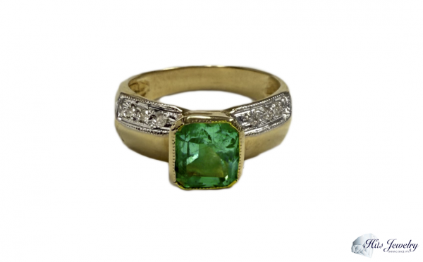 2 Carat Colombian Emerald and Diamonds Ring | 18k Yellow Gold